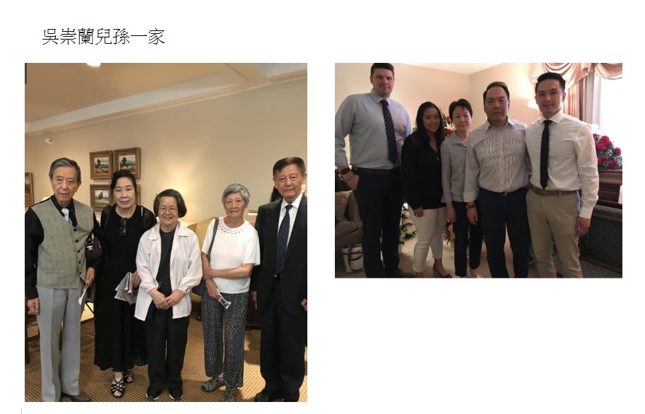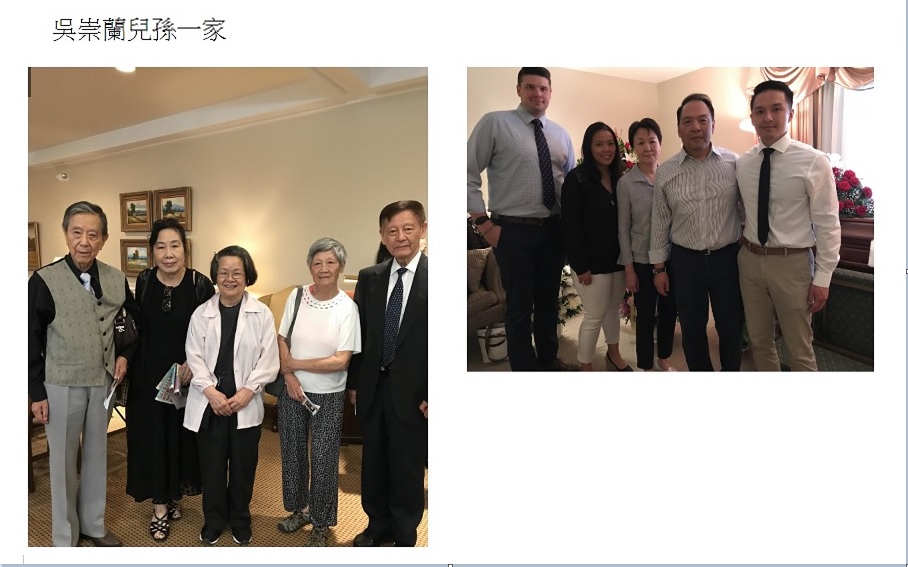 七月七日,戴堯天,梁麗珠夫婦(吳崇蘭曾經為戴堯天回憶錄寫過序)給吳崇蘭送上最後的默禱和祝福,崇蘭遠從紐約來的外甥女李立儀代表崇蘭的妹妹崇慈,崇慈本來計劃要來給姐姐送行,因為年事已高,又臨時牙腫所以沒有成行,好在在今年六月底,姐姐病重時,特地從紐約趕來探望,誰知才兩星期,姐妹倆就天人永隔了呢 ?崇蘭同父異母的弟弟崇善夫婦,除了兩個兒子全家,女兒,外孫女,崇蘭大半個世紀的老友葉錦翟的女兒阮立麗,還有許許多多的親戚朋友在這兩天當中,都來和崇蘭大姐告別。五十多人的祝福和祈禱,都來陪伴吳老走完人生的最後旅程。 追思儀式上最令我感動的是孫子明宇製作的「懷念奶奶的影片」,孫子和孫媳婦一家照顧奶奶的種種,溫馨感人, 和爺爺的全家福, 和奶奶的溜狗,孫子的對話,奶奶蝴蝶飛的歌謠,這首曾經在她的作品《彩虹夢》中出現的已經超過半個世紀,都還能記得住,晚年搬來和孫子們住,第三代所帶給老人的樂趣,有些可能還不是第二代所能給予的呢! 最後,我想把崇蘭大姐的一小段手稿,抄錄如下: