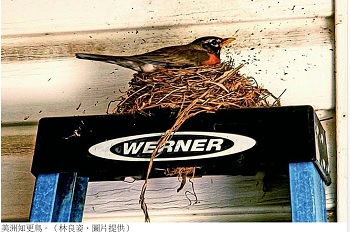 家裡的工具梯平常都擱在後院的露台下面。今年四月下旬的一個黃昏,先生因要修理燈泡去搬動梯子時,突然有顆藍色的鳥蛋從梯子上方掉下來,落地後蛋殼裂開,露出了蛋清和深黃色的蛋黃。無意中殘害了一個生命,我們心中有些不忍。仔細一瞧,原來梯子上端交接處的圓形缺口,居然有個鳥巢。築在梯子高處圓洞中,相當隱密,既可躲避老鷹及松鼠的攻擊,露台屋簷也能為其遮風擋雨,令人不得不佩服鳥媽媽的智慧。 這個鳥巢造型精巧,由枯枝、草葉構成。試想小小一隻鳥兒,要花費多少工夫力氣,辛勤地銜來枝葉細心編排,才能築成一個鳥窩?著實令人讚嘆啊!巢中還剩下一顆藍色的鳥蛋,不是淺藍、深藍、靛藍或碧藍,而是一種璀璨鮮豔的鳥蛋藍,非常綺麗。當時鳥媽媽可能出去覓食了,還沒回來。 先生從梯中取出鳥巢,但我想到年少時唱的天倫歌:「小鳥歸去已無巢,兒欲歸去亦無舟,何處覓源頭,何處覓源頭……」將心比心,要是鳥媽媽回來發現鳥巢和鳥蛋不見了,肯定非常傷心。我於是請先生將鳥巢歸位,先別搬動,等小鳥孵出來離巢時再使用工具梯。此後,我們時常觀察著後院鳥巢的動靜,過了兩天,發現巢中又添了一顆鳥蛋,也終於盼到了母鳥的身影。 看那鳥蛋絢麗若寶石,我本來以為產下蛋的鳥會是隻藍鳥或翠鳥,沒想到鳥媽媽是隻灰褐色的小鳥,頭部及背面是灰黑色,胸腹呈紅褐色。牠常坐在巢中孵蛋,但只要看到有人靠近,立刻飛走,非常警醒。我從遠處拍照後,運用手機的鳥類鑑定軟體查詢,才知道牠居然就是名聞遐爾的「美洲知更鳥」,原來長這模樣啊! 歐洲人非常喜愛知更鳥,將其視為上帝之鳥。傳說中,知更鳥的羽毛本來是棕色的,當耶穌受難被釘在十字架時,牠在耶穌身旁唱歌以舒緩其痛楚,因而染到耶穌身上的血,從此牠胸脯羽毛的顏色就變為鮮紅色,所以知更鳥是種神聖的象徵。美洲知更鳥學名為旅鶇,是畫眉鳥的一種,其實和歐洲的知更鳥並不同屬,但因外表相似,胸腹皆有紅褐色的羽毛,因此被稱為美洲知更鳥。如同歐洲知更鳥的傳說,美洲旅鶇也流傳著類似的故事,在印地安人的神話中,知更鳥是因為想要吹散火焰,以拯救一名印地安人和一名男孩的性命,所以胸部才會變成紅褐色。美洲人認為,知更鳥是春天的象徵,知更鳥現身,意謂著春天的來臨。魁北克人則相信,每年第一個看到知更鳥的人會有好運。因其鳴聲悅耳,性情溫馴,深受許多人的喜愛,還被美國康乃狄克州、密西根州和威斯康辛州選為州鳥。由此看來,知更鳥可說是福氣之鳥。 美國作家妮爾.哈波.李(Nelle Harper Lee)於1960年獲普立茲獎的經典小說《殺死一隻知更鳥》(To Kill a Mockingbird)中,以知更鳥來暗喻那些善良、無辜、安分守己、沒有做過壞事,卻被人攻擊定罪的人。Mockingbird的中文名應是「仿舌鳥」,之所以被譯成「知更鳥」,乃源於一首古老的英國童謠〈是誰殺了知更鳥?〉(Who killed Cock Robin?)。書中寫道:「知更鳥只唱歌給我們聽,什麼壞事也不做。牠們不吃人們園子裡的花果蔬菜,不在玉米倉裡做窩,牠們只是衷心地為我們唱歌。」殺死無辜的人,猶如殺死一隻無罪的知更鳥。所以美國南方有句諺語:「殺死一隻知更鳥就是一樁罪惡。」 我弟弟說,我們家是風水寶地,才會吸引益鳥來棲。我沒想那麼多,但每天看著鳥媽媽坐窩孵蛋,時而聽見歡快如口哨聲的鳥鳴,倒也頗富情趣。我盼著小鳥出世,當成自家的喜事。大約兩周過後,小鳥終於破殼而出。羽翼未全,粉粉一團尚未成型,彷如毛胚,只能隱約看到尖尖的喙子。但小鳥生長的速度很快,過了一周,已長出了灰褐色的羽毛,眼睛也睜開了。小鳥的嘴呈橘黃色,難怪古人看到雛鳥,會將幼童喻為「黃口小兒」。看牠們常張大嘴吧,嗷嗷待哺,總是一副很飢餓的樣子,讓我不禁聯想到女兒幼時下課回家,總是可憐兮兮地告訴我:「媽媽,我餓!」雖然上了一天班的我已精疲力竭,但看到孩子飢渴的眼神,我總是趕緊洗手作羹湯,先將孩子餵飽再說。不論是人類或是鳥禽,愛護子女的心情其實都相同。 雖然小鳥已孵出,但鳥媽媽仍常坐鎮巢中,保護及餵食雛鳥。還有隻鳥爸爸,時而在附近盤旋。一家四口,溫馨靜好。又過了數天,我們好奇小鳥長得如何了,有天趁著沒看到母鳥坐巢,先生爬上梯子想就近拍照。沒料到母鳥竟藏身巢中,牠察覺有人接近受到威脅便飛了出來,還帶飛了尚未展翅飛行過的幼鳥。我在屋內,聽到鳥兒悲切著急的啼叫聲,以及唧唧喳喳地彼此示警聲,也非常揪心。有隻雛鳥落地後就飛不動了,先生便將牠放回巢中,我們只能祈禱牠沒有摔傷,但願躲在附近的鳥媽媽能回來照顧牠,別將之遺棄。 隔天巢中的小鳥已不見蹤影,可能是被鳥媽媽帶走了。牠們受到驚擾後,便棄巢搬家,再也沒有回來。儘管我們沒有惡意,卻害得鳥兒失去居所。看著鳥去巢空,感到非常內疚。雖然初夏的後院仍綠意盎然,但少了可愛的知更鳥,讓我有種寂寞空庭鳥飛絕的惆悵。 懷著祝福的心情,我期望離巢的鳥兒已經找到新窩,不再流離失所。幼鳥們羽翼日豐,能夠飛得更高更遠。來年春天,歡迎象徵善良、幸福、神聖的知更鳥,再來我家築巢作客,我們必以喜悅的心情遠遠觀望,不再驚擾牠們。(寄自德州)