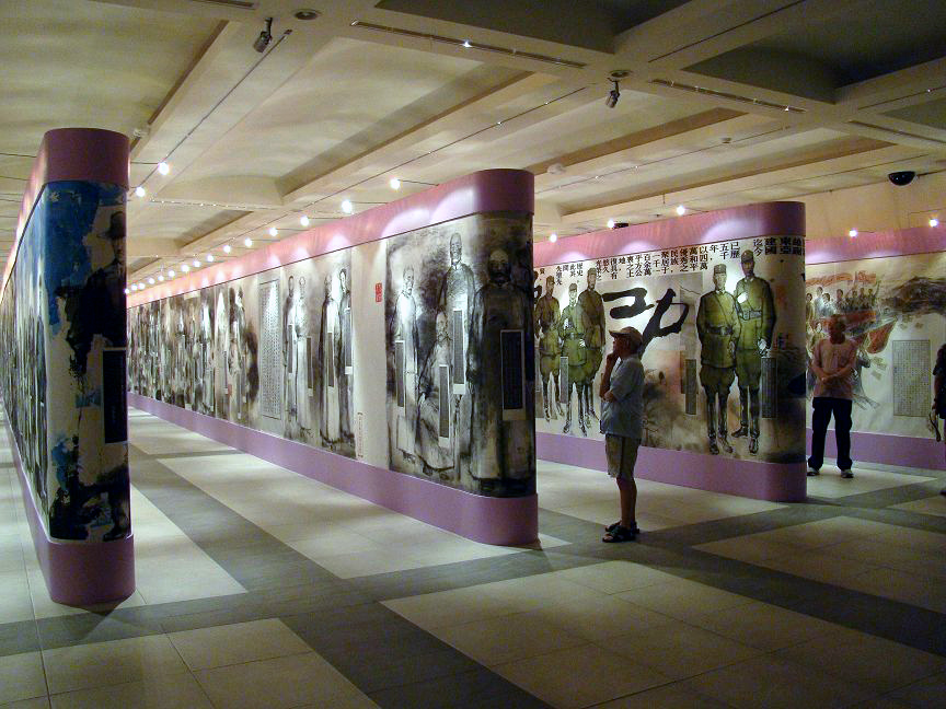 七七抗戰73周年,兩岸紀念抗日團體首度合作,展出五十位大陸畫家費時五年半完成的抗日巨畫,總長820公尺,創下台灣畫史上最長畫卷紀錄。