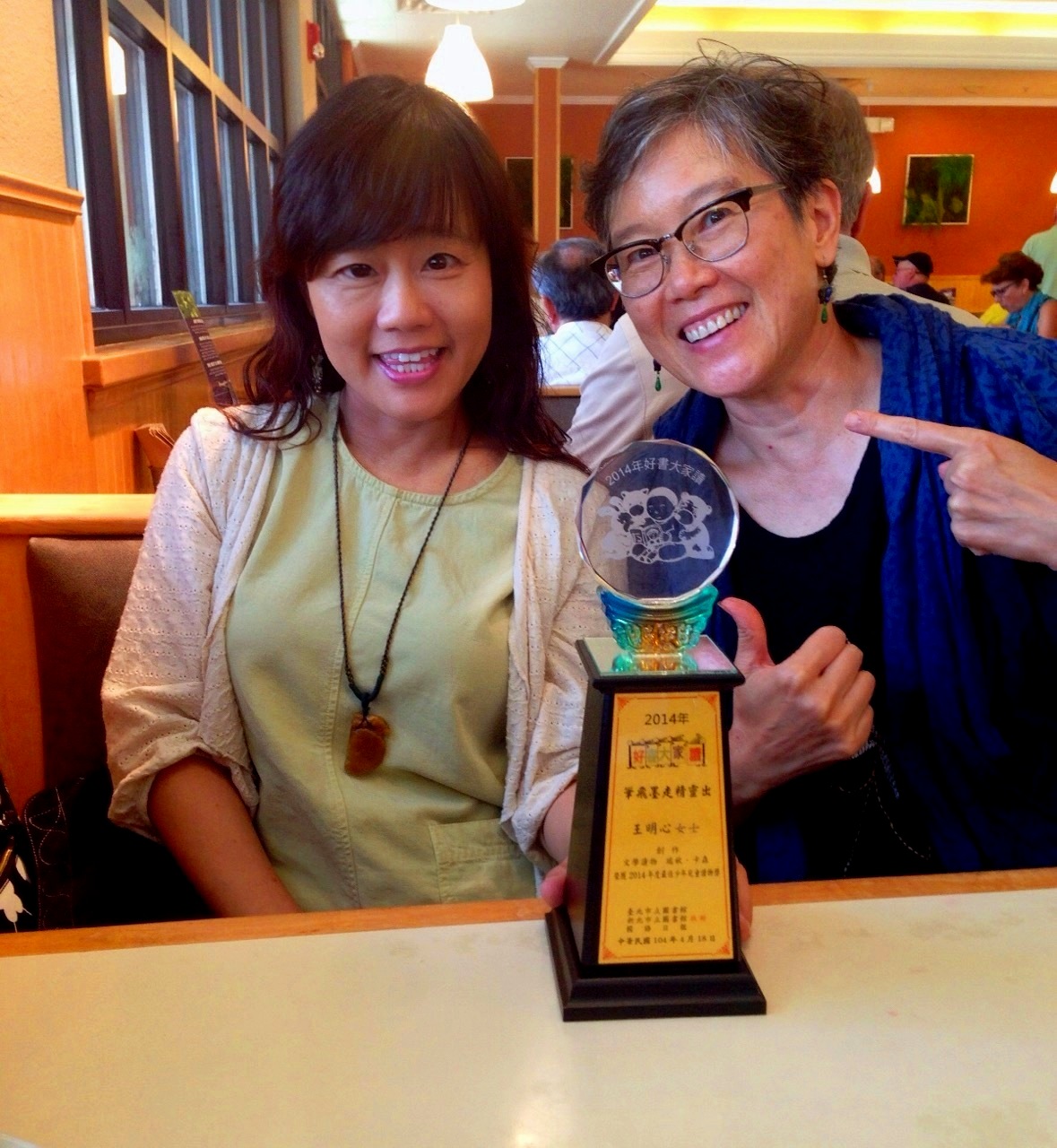 北卡書友會會長王明心及作家李民安日前獲頒「2014年度最佳少年兒童讀物獎」,得獎作品分別是《瑞秋卡森:推動環保的手》和《柴契爾夫人:永不妥協的鐵娘子》。此獎由台北市立圖書館、新北市立圖書館、國語日報社、幼獅少年、中華民國兒童文學學會聯合主辦,是台灣兒童文學界的年度盛事。