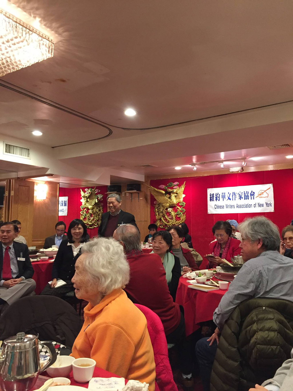紐約華文作家協會於十二月十日舉行歲末聚會,地點在法拉盛的東湖餐廳,五十多位會員、文友、及家眷不畏寒冬,熱烈出席,包括趙淑俠、趙淑敏、叢甦、王渝、陳九、胡志成、阮克強、及100歲高齡的丁紀鳳女士等人,會場洋溢暖烘烘的氣氛。